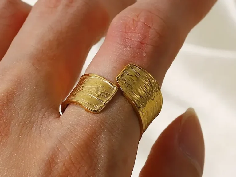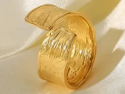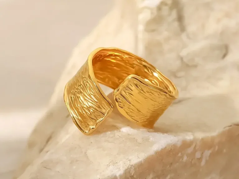 Dieser mit 18K Gold veredelte Design-Ring vereint Kunst und Ästhetik in vollendeter Form. Seine edle Gestaltung fängt das Licht ein, zieht alle Blicke auf sich und verleiht jedem Moment einen Hauch von Luxus. Ein Statement für Stilbewusstsein.