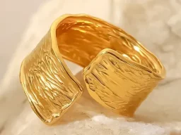 Dieser mit 18K Gold veredelte Design-Ring vereint Kunst und Ästhetik in vollendeter Form. Seine edle Gestaltung fängt das Licht ein, zieht alle Blicke auf sich und verleiht jedem Moment einen Hauch von Luxus. Ein Statement für Stilbewusstsein.